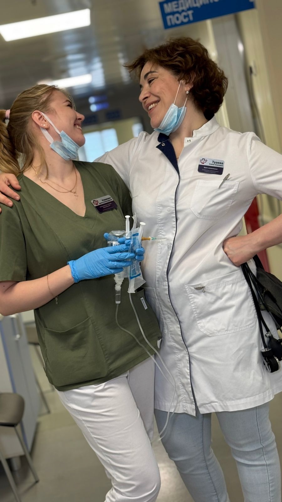С 8 утра и до вечера Ариша, как заведённая бегает по отделению (разводит препараты, ставит катетеры, подключает капельницы, делает уколы, берёт кровь и снова бежит на сигналы от пациентов). Моя дружба с этой медсестрой завязалась давно, еще в 2022 году и с того момента эта девочка стала, как родная сестра!