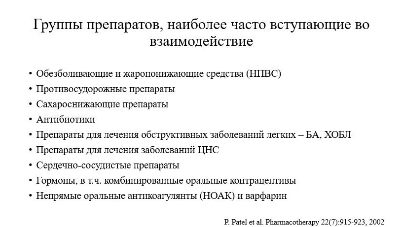 Помните: всегда можно подобрать лекарственные средства, которые в наименьшей степени вступают в лекарственные взаимодействия.