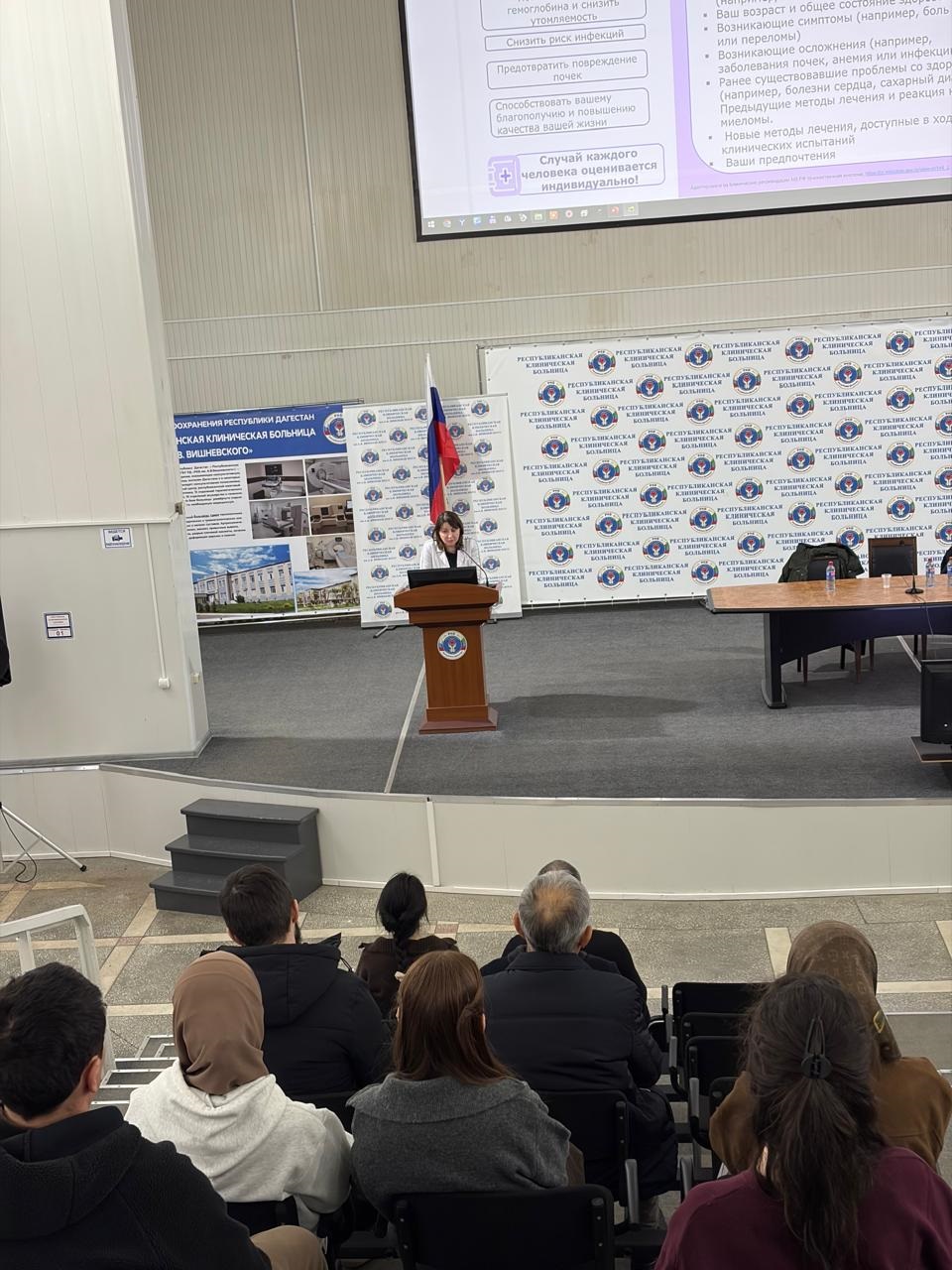 Байгишиева Н.Ч., заведующий отделением гематологии Республиканской клинической больницы Республики Дагестан, рассказала собравшимся о лечении заболевания множественная миелома. Было отмечено, что современные инновационные лекарственные препараты и трансплантационные методики позволяют достичь ремиссии, обеспечивают длительный контроль за опухолевым процессом, сохраняя качество жизни пациентов. Но этого результата можно достичь только при выполнении назначений врача, своевременного проведения диагностических мероприятий и добросовестного отношения к лечению самого пациента. Вместе с тем, подбор лечения каждого пациента осуществляется индивидуально, с учетом имеющихся заболеваний и переносимости лечения.
