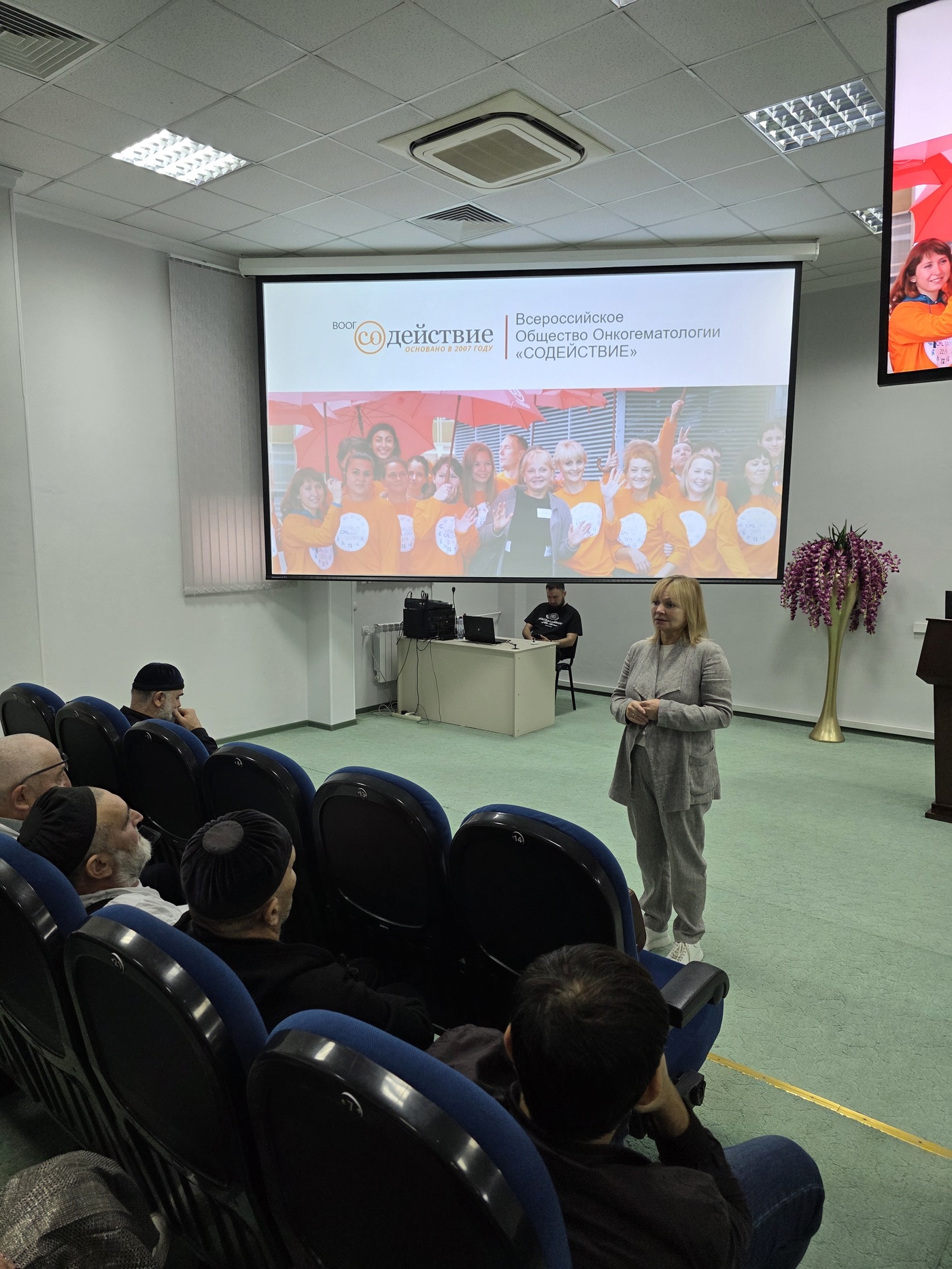 Открыла мероприятие Матвеева Лилия Федоровна, президент ВООГ "Содействие", которая приветствовала участников, рассказала об истории создания организации. Заведующий гематологическим отделением ГБУ «Республиканская клиническая больница им. А.А. Кадырова», главный внештатный специалист гематолог Минздрава Чеченской Республики Ясакова Зимани Зенкирхановна рассказала о теме школы для пациентов, необходимости заботы о своем здоровье. Шовхалов Умар Алиевич, региональный представитель ВООГ "Содействие" в Чеченской Республике, призвал пациентов быть активными на мероприятии и в лечении.