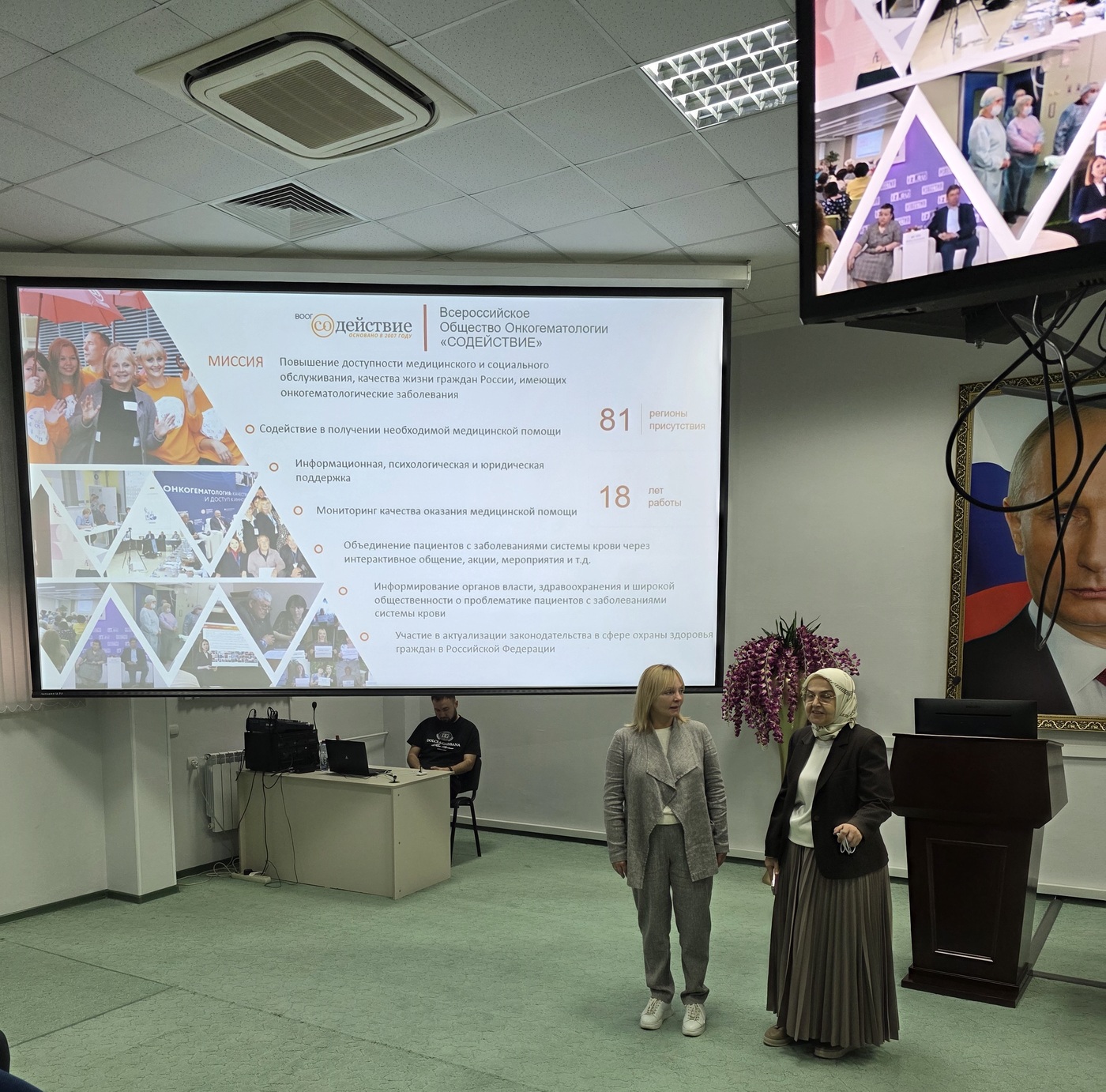 Солодовников Андрей Николаевич, 1-й вице-президент ВООГ "Содействие" рассказал о деятельности организации в настоящее время, остановился на некоторых юридических вопросах получения медицинской помощи пациентами с заболеваниями крови.