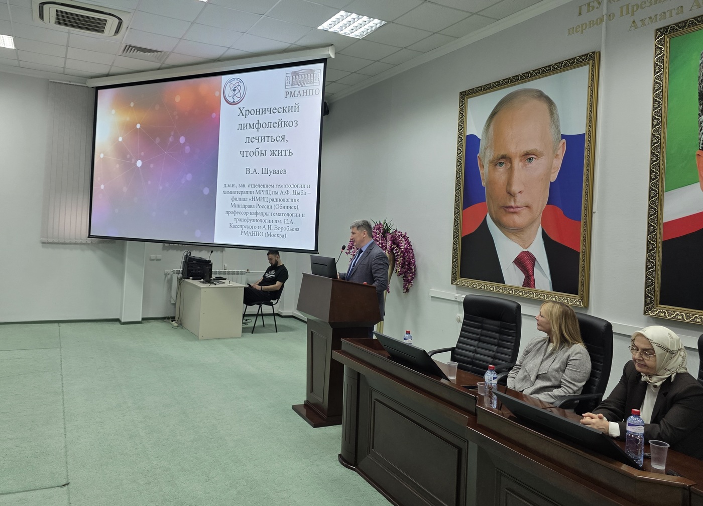 В мероприятии принял участие Шуваев Василий Анатольевич, д.м.н., заведующий отделением гематологии и химиотерапии МРНЦ им. А.Ф. Цыба - филиала НМИЦ радиологии Минздрава России (г. Обнинск), профессор кафедры гематологии и трансфузиологии имени академиков И.А. Кассирского и А.И. Воробьева РМАНПО МЗ РФ.