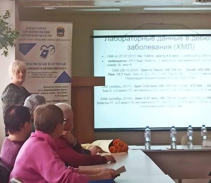 Открыла школу региональный представитель ВООГ "Содействие" в Орловской области Пухова Т.Ф. В своем выступлении она отметила, что хроническое заболевание полностью меняет жизнь человека: нарушается привычный ритм жизни, меняется социальная и физическая активность. Но приходится адаптироваться к болезни, научиться жить с ней. «Хорошая новость состоит в том, что, если серьезно относиться к лечению и выполнять назначения врача, получится избежать серьезных, угрожающих жизни осложнений и продлить жизнь на годы. Мы понимаем, что пациенты нуждаются во всестороннем внимании, которое могут дать семья, друзья, психолог. Все мы не просто пациенты, а, скорее, одна большая семья. В свою очередь, в ходе проведения школы пациентов «Хронический миелолейкоз», Марина Николаевна Козьмина постарается помочь разобраться, что это за болезнь и какое лечение существует» - завершая вступительное слово, отметила Татьяна Федоровна.