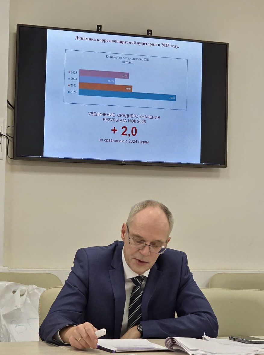 Были рассмотрены итоги проведения независимой оценки качества условий оказания услуг медицинскими организациями Ленинградской области в 2025 году, результаты контрольно - выездных обследований медицинских организаций членами Общественного совета НОК и оценке доступности среды для лиц с ограниченными возможностями. В завершении были предложены и утверждены рекомендации по совершенствованию деятельности медицинских организаций в 2026 г.