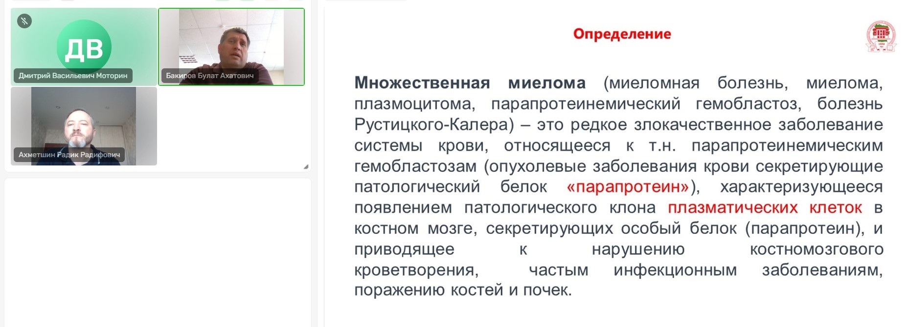 Медицинскую часть школы о заболевании представил Бакиров Булат Ахатович, заведующий кафедрой госпитальной терапии №2, д.м.н., доцент Башкирского государственного медицинского университета (БГМУ). Он представил лекцию по теме: «Множественная миелома - не приговор».