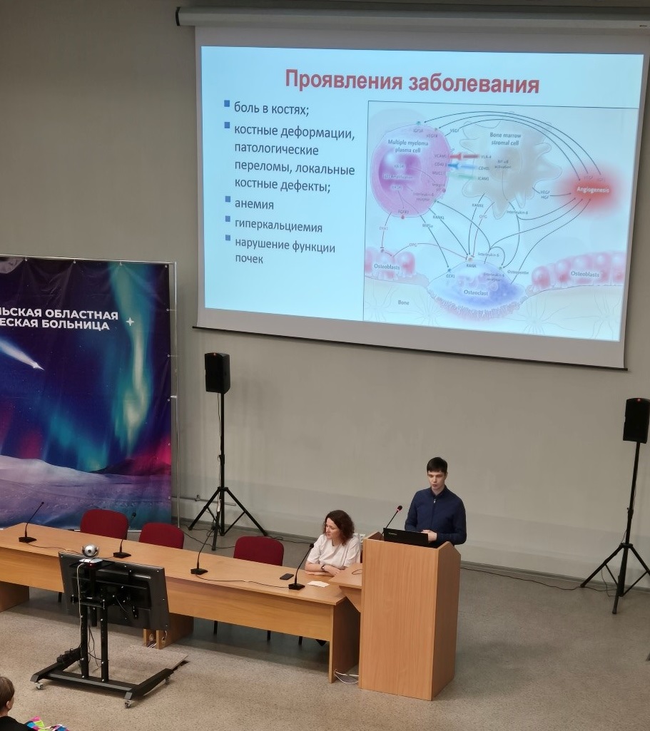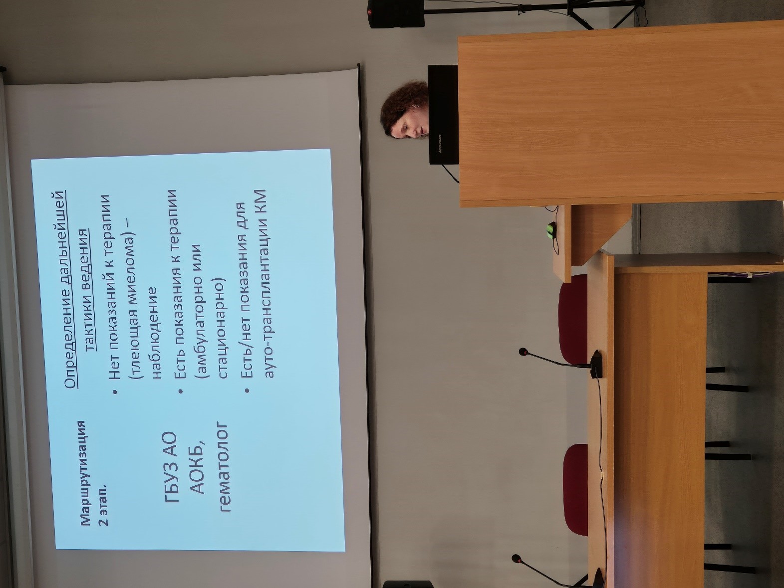 С докладом о маршрутизации пациентов с заболеванием множественная миелома в Архангельской области выступила Левина Екатерина Юрьевна, врач-гематолог ГБУЗ АО «Архангельская Областная Клиническая Больница», Поликлиническое отделение.