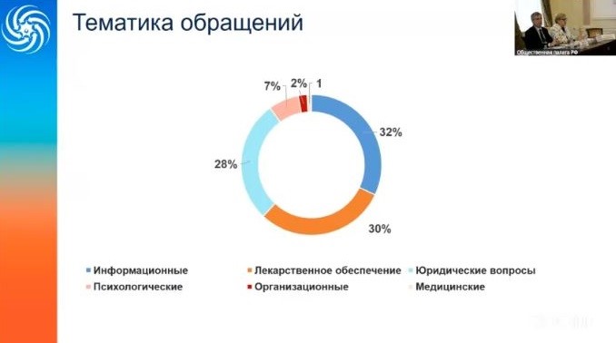 В докладе был отмечен процент обратившихся граждан по определенным нозологиям: 23% по раку молочной железы, 21% по раку легкого, 16% по ЗНО ЖКТ, 14% по раку предстательной железы, 7% по онкогематологии, 19% прочие. Также в докладе была представлена статистика обращений, вопросы которых были решены при участии представителей организации и хотелось бы чаще получать обратную связь от пациентов по результатам помощи им. В 2024 году из общего числа обращений 73 % граждан в разделе решённых обращений и 27 % в нерешенных, за 8 месяцев 2025 года цифры распределились следующим образом: 78 % решенных обращений и 22% нерешенных. Светлана Бокова отметила, что из числа обращений к ним, есть пациенты с онкогематологическими заболеваниями - неходжскинские лимфомы и миеломная болезнь. По характеру обращений – это отказ пациентам в лекарственном обеспечении препаратами, не входящими в перечень ЖНВЛП.