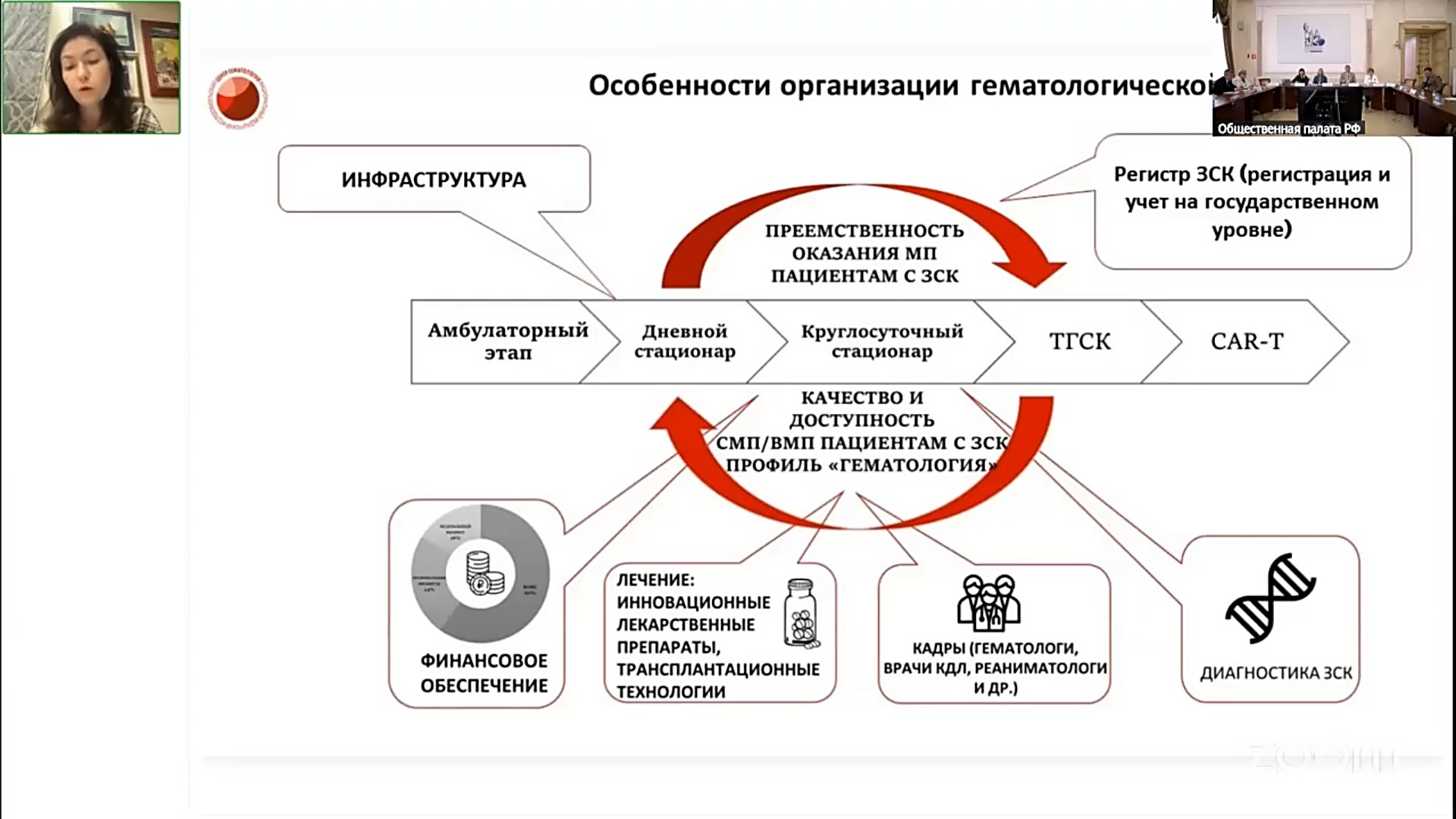 С докладом «Доступность и качество гематологической помощи: текущие ограничения и векторы развития» в онлайн формате выступила заместитель директора Департамента организации медицинской помощи и санаторно-курортного дела Минздрава России Валерия Александровна Гульшина.