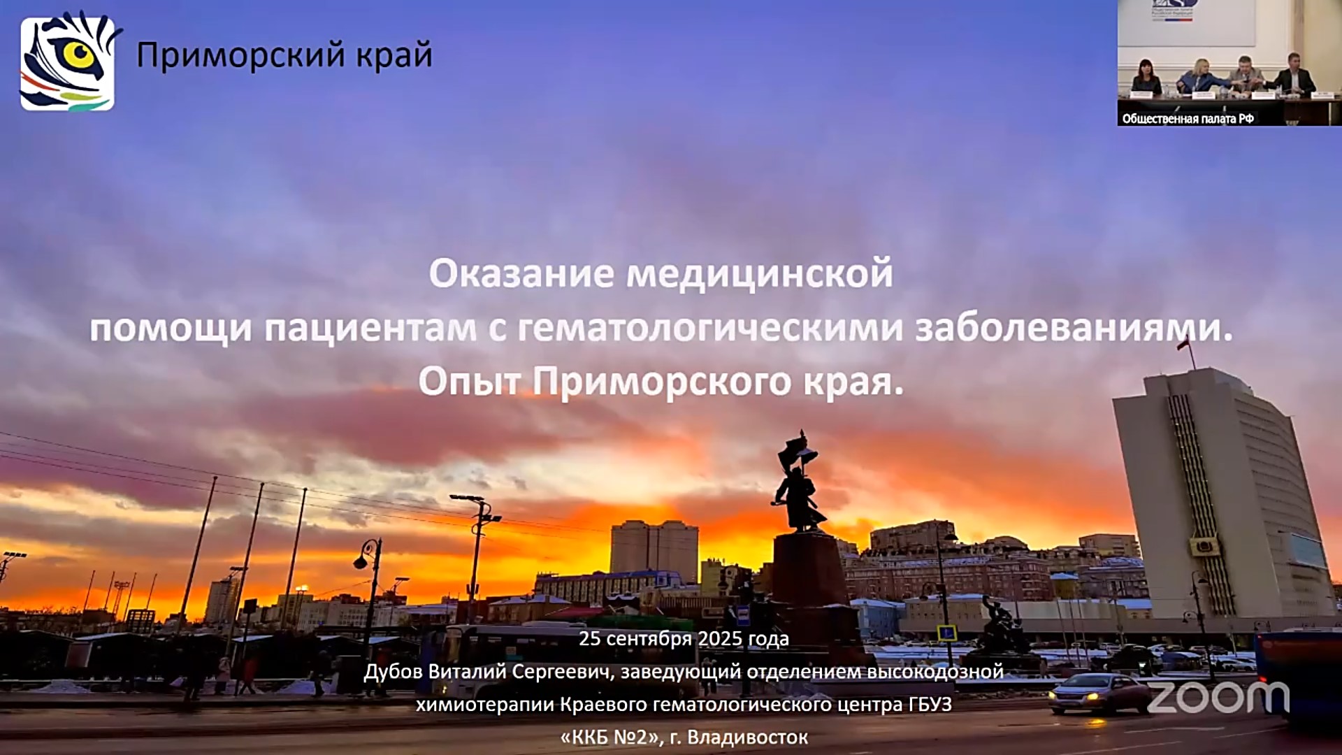 С докладом «Оказание медицинской помощи пациентам с гематологическими заболеваниями. Региональный опыт: Приморский край» выступил заведующий отделением высокодозной химиотерапии Краевого гематологического центра ГБУЗ «ККБ №2» Виталий Сергеевич Дубов.