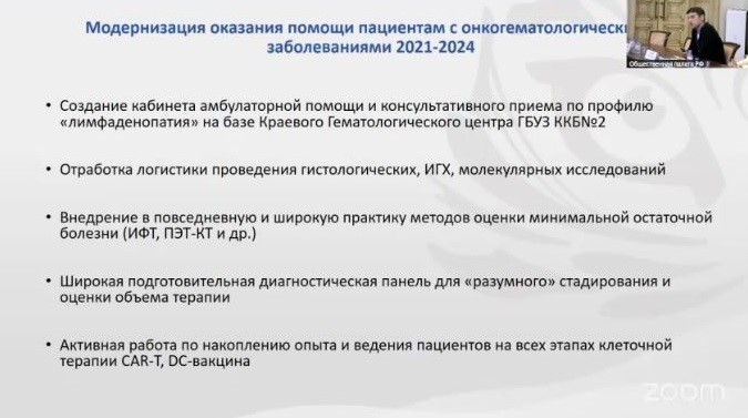 Виталий Сергеевич рассказал о структуре Краевого Гематологического центра, об организации амбулаторного и стационарного этапов медицинской помощи по профилю «гематология» в Приморском крае, о проведении в регионе школ для больных с гематологическими заболеваниями и планах развития службы, о модернизации оказания помощи пациентам с онкогематологическими заболеваниями за период с 2021 г. по 2024 г.